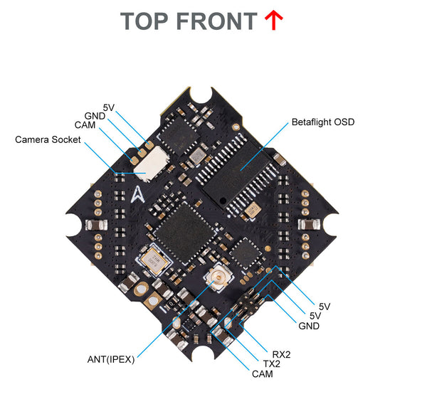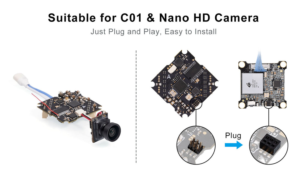 - This AIO board also reserves a Plug & Play port for the C01 Camera, C01 Pro Camera and BETAFPV Nano HD Camera, no soldering work needed, super convenient for installation.