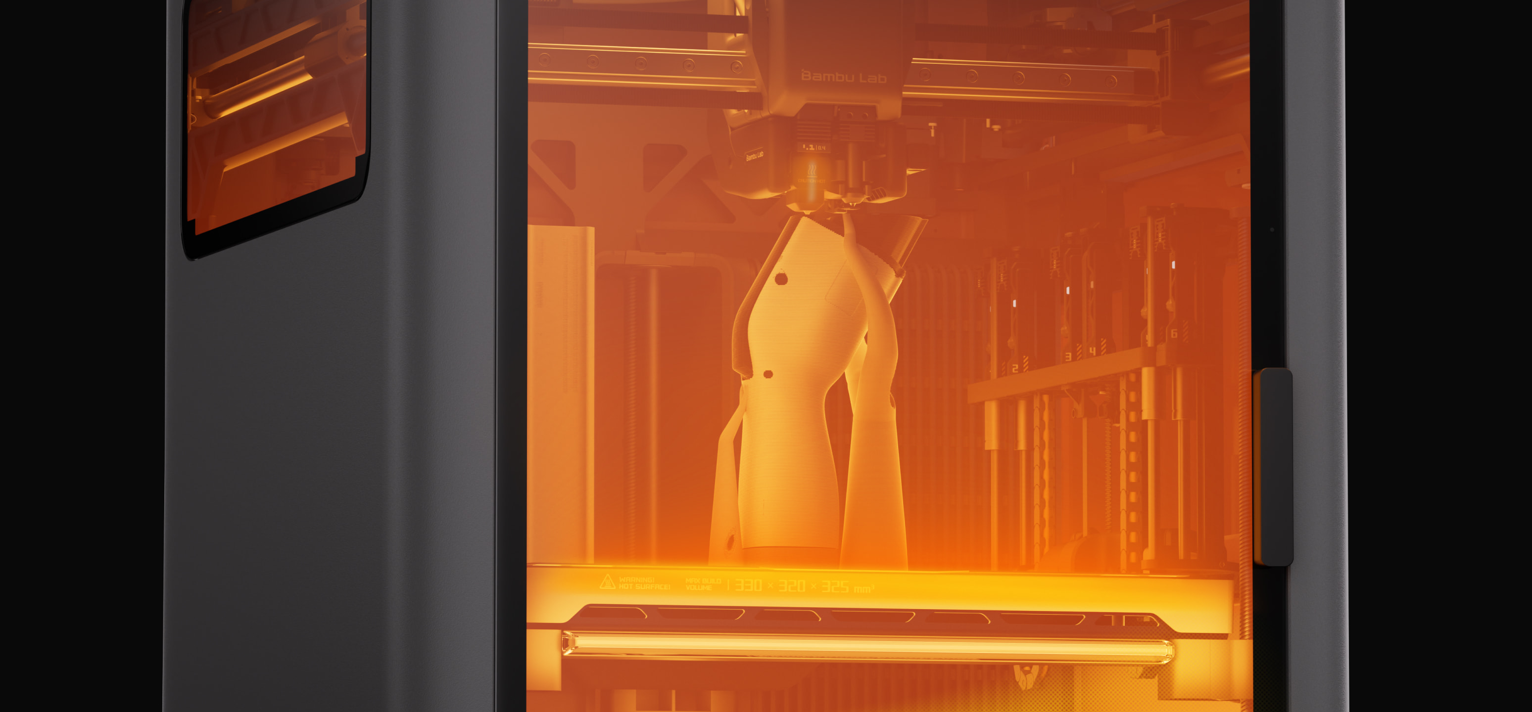 The H2C's 65 °C actively heated chamber & 350°C Nozzles minimises warping and deformation while enhancing layer adhesion for high-performance, high-temperature filaments.