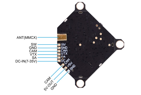The A02 5.8G VTX is a lightweight, small size and high-quality 25-800mW VTX, it offers a selectable 25/200/500/800mW output power for extreme range FPV flight. With 800mW output power, pilots can fly drones up to 1100 meters away to explore more possibilities and fun. Featuring a fixed mounting hole and 6-pin connector, which makes it’s super easy to install. It's a perfect choice for Whoop & Toothpick drones with 26*26mm mounting hole, like the X-Knight series, Beta85X/95X series and TWIG series drone, the A02 25-800mW 5.8G VTX is ready to push your FPV range to the horizons and beyond.