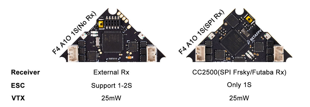 - F4 1S AIO FC(No Rx) not only integrates with the 25mW VTX but also supports a 1-2S power system, which is perfectly suitable for the weight-sensitive drone such as Meteor75 and Beta85 Pro2.