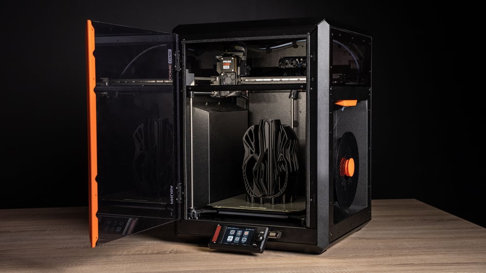 Prusament PC Space Grade Black can be printed on common desktop 3D printers, just like regular polycarbonates. The filament shows little to no warping. Models as large as 200x200 mm can be safely printed on Prusa 3D printers without any issues.